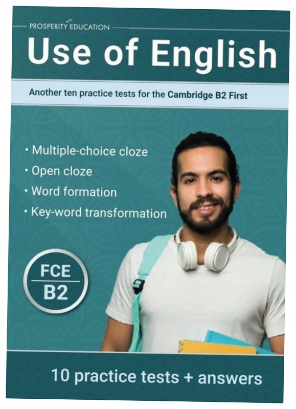Використання англійської мови: інша ця практика для Кембриджського В2 спочатку була створена після успіху використання англійської мови: Десять практичних тестів для спочатку Кембриджського B2 та використання англійської мови для Кембриджського В2. Він містить ще 10 тестів у галузі використання англійської мови, розроблених так, що вони вірно склали складні офіційні аркуші іспиту B2 (FCE). Загальна кількість фізичних осіб, що підлягають оцінці одиниць завдань, становить 300. Книга -це великий набір високоякісних матеріалів, дуже корисних для підготовки до іспиту. Кожен тест складається з чотирьох частин, що охоплюють такі типи речення: Частина 1: Множина вибору CLEZE) Частина 2: Доповнення прогалин у тексті (відкрите клозе) Частина 3: Формування слів (Формування слів) Частина 4: Перетворення з ключем слова (ключові перетворення слова) також включає ключ (ключ відповіді) (аркуш відповідей), на який, як під час іспиту, кандидата передає свої відповіді.