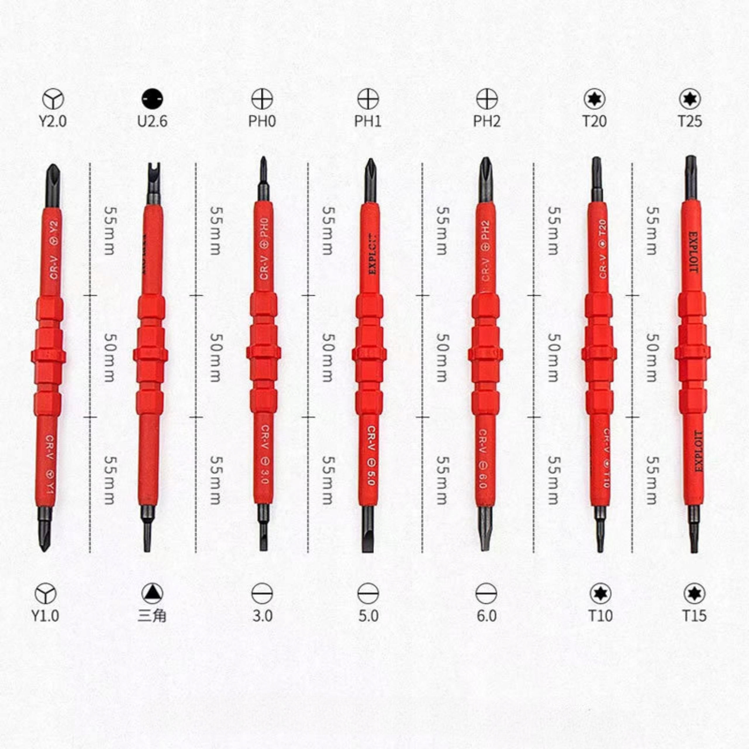 - Насолоджуйтеся різноманітністю та універсальністю завдяки 14 наконечникам різних розмірів і форм, які ідеально підходять до багатьох гвинтів і болтів. У набір входять плоска викрутка, викрутка Phillips, Torx і Allen.