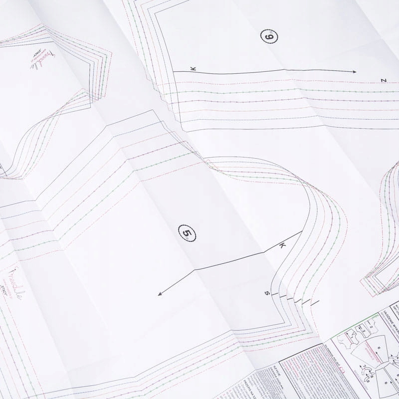 Викрійка дитячої сукні розміщена на великому аркуші паперу з чітко нанесеними розмірами. Кожен розмір позначено окремим кольором, тому знайти та відстежити потрібний дуже легко. Крім викрійки, на цьому ж аркуші паперу ви знайдете дуже корисні поради, наприклад, як зняти сантиметрову стрічку з фігури і правильно підібрати розмір одягу, який плануєте пошити. Там же ви знайдете інформацію про те, як намалювати викрійку, в якому порядку кроїти тканину і як пошити обрану модель одягу.