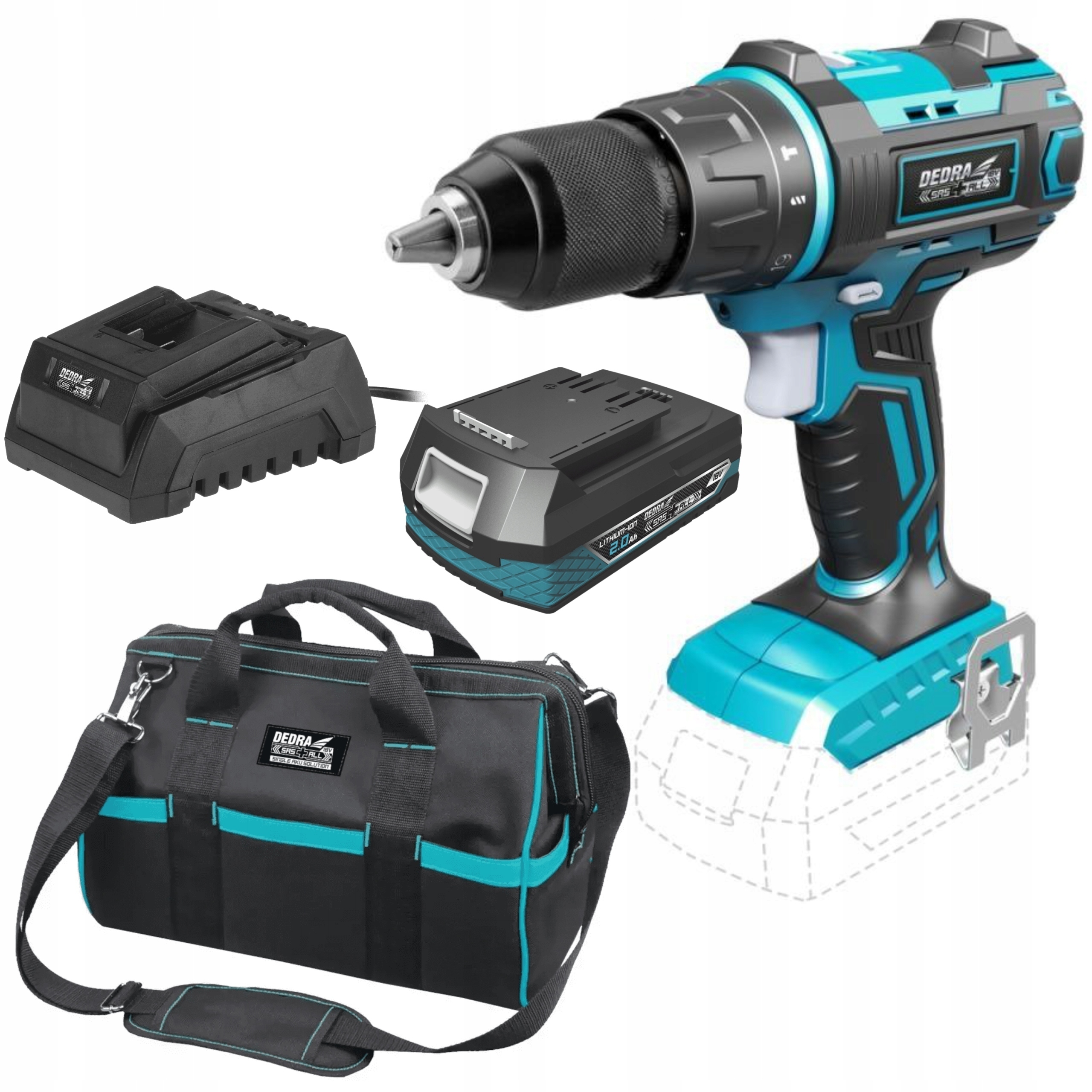 Набір акумуляторних електроінструментів сімейства SAS+ALL, що містить усі необхідні елементи для швидкого початку роботи. Ідеальний вибір для першої покупки електроінструменту DEDRA SAS+ALL. У набір входить: