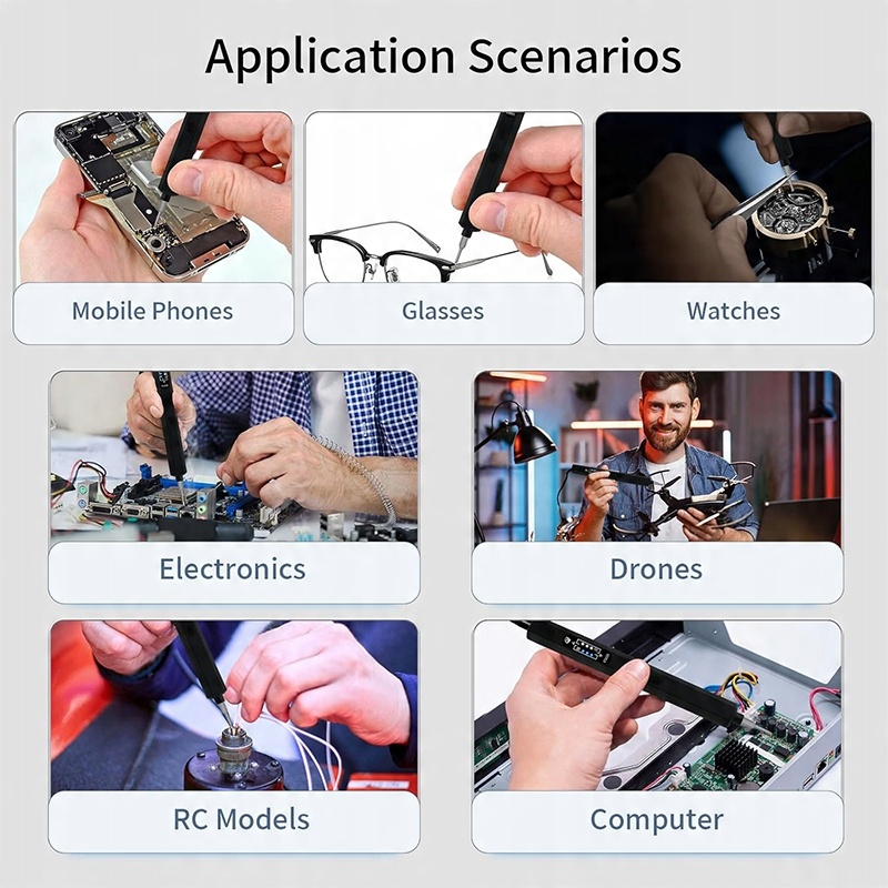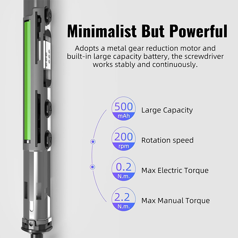 SEQURE ES555 — це вдосконалена багатофункціональна електрична викрутка, призначена для спрощення завдань точного ремонту. Оснащена як безперервним, так і автоматичним режимами, ця викрутка забезпечує роботу без рук, автоматично зупиняючись, коли гвинти повністю затягуються. Цей інноваційний підхід революціонізує традиційне використання викрутки, роблячи її ідеальним вибором для складних завдань, таких як збирання та розбирання малої електроніки.