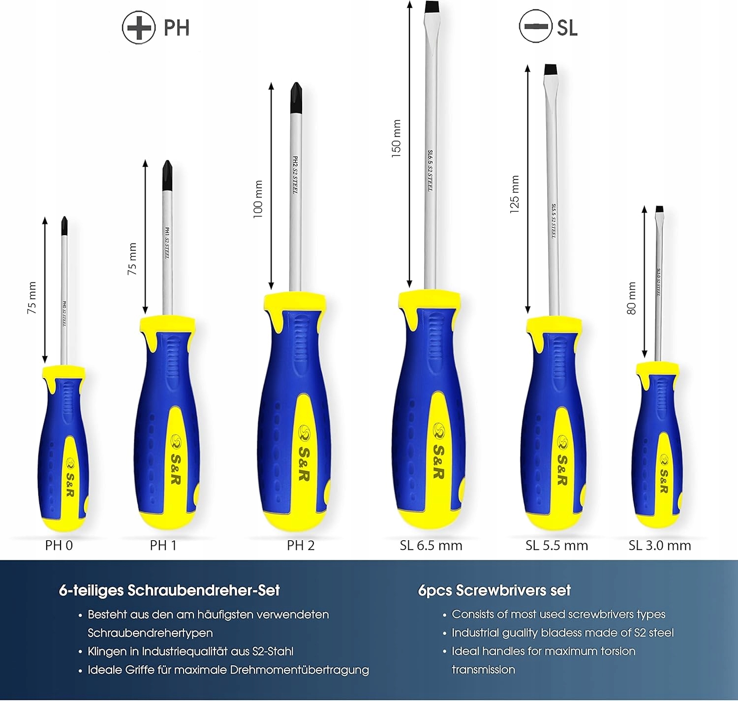 викрутка викрутки встановить 6 шт. Плоскі рН викрутки S2 S & R