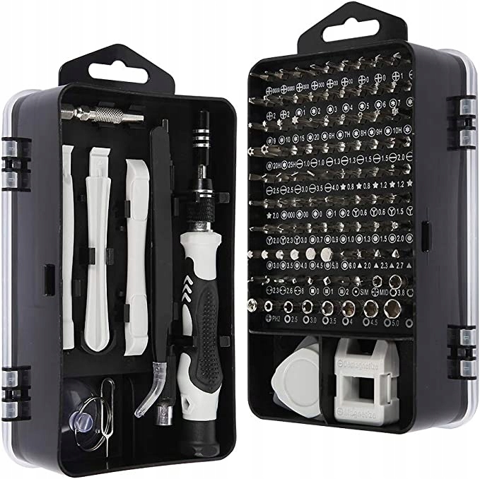 Набір складається з 115 елементів, що дозволить використовувати відповідну викрутку та іншого інструменту майже в кожній ситуації. викрутка буде працювати в майстерні, а також вдома, особливо якщо є необхідність зробити різні ремонти.
