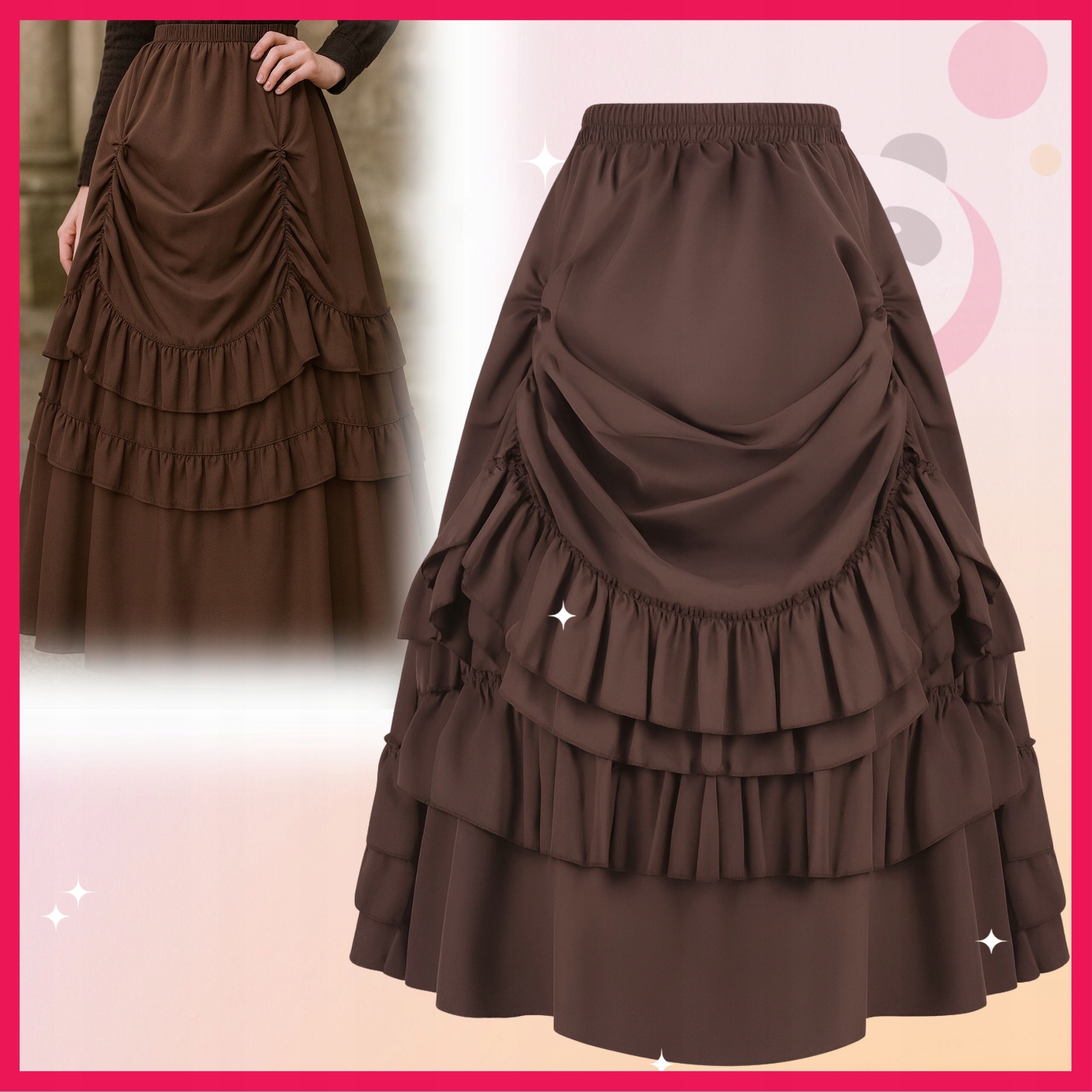 ⭐Ця коричнева спідниця у вікторіанському стилі з рюшами та рюшами додає елегантності будь-якому вбранню та ідеально підходить для історичних костюмів, костюмів стімпанку та піратів.