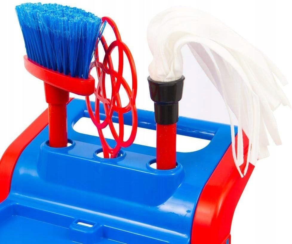Очищаюча візка для наймолодших, які хочуть допомогти мамі та татові в домашніх завданнях. Набір включає відро з соковижималкою, шваброю, мітлою та віноком. Коляра легко встановити. Діти зможуть навчитися домашнім домашнім завданням батьків, практикувати рухові навички та почати свою уяву. Весь набір вимірює приблизно 48 см.