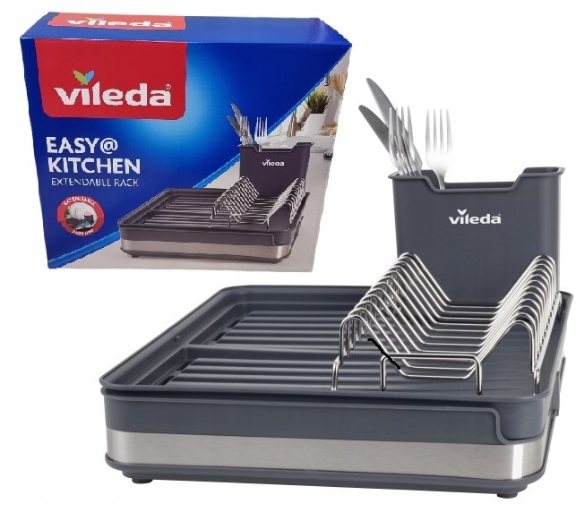 VILEDA СУШАРКА ДЛЯ ПОСУДУ РОЗСУВНА ВЕЛИКА ОСУШУВАЧКА З ЛОТКОМ ДЛЯ СТОЛОВИХ ПРИЛАДІВ