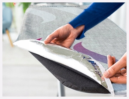 Металізований шар Чохол Reflect забезпечує максимальне використання пари та тепла, роблячи прасування швидшим і ефективнішим завдяки поверненій парі.