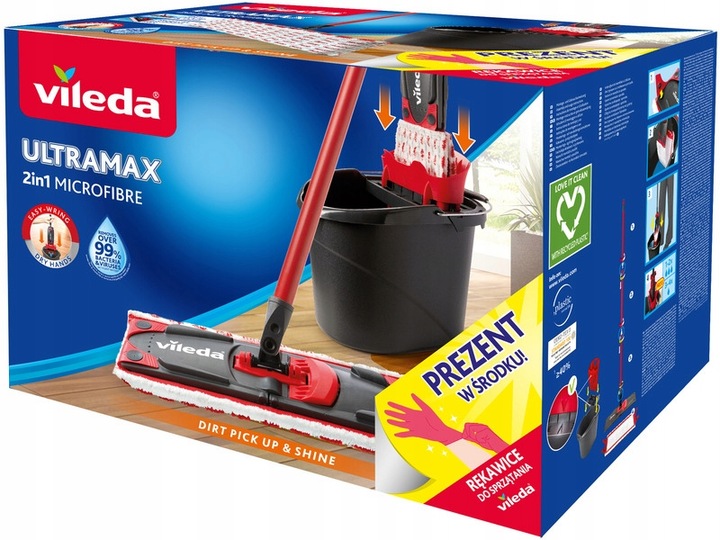 VILEDA UltraMax Box плоска швабра + безкоштовні рукавички, КОМПЛЕКТ З ВІДРОМ