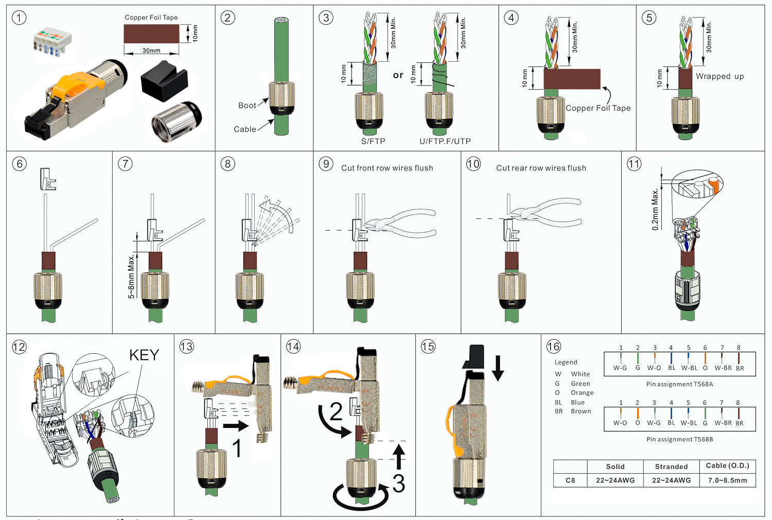 Вилка підходить для кот. Кабелі 6A, 7, 7A, 8.1 (внутрішні та зовнішні)