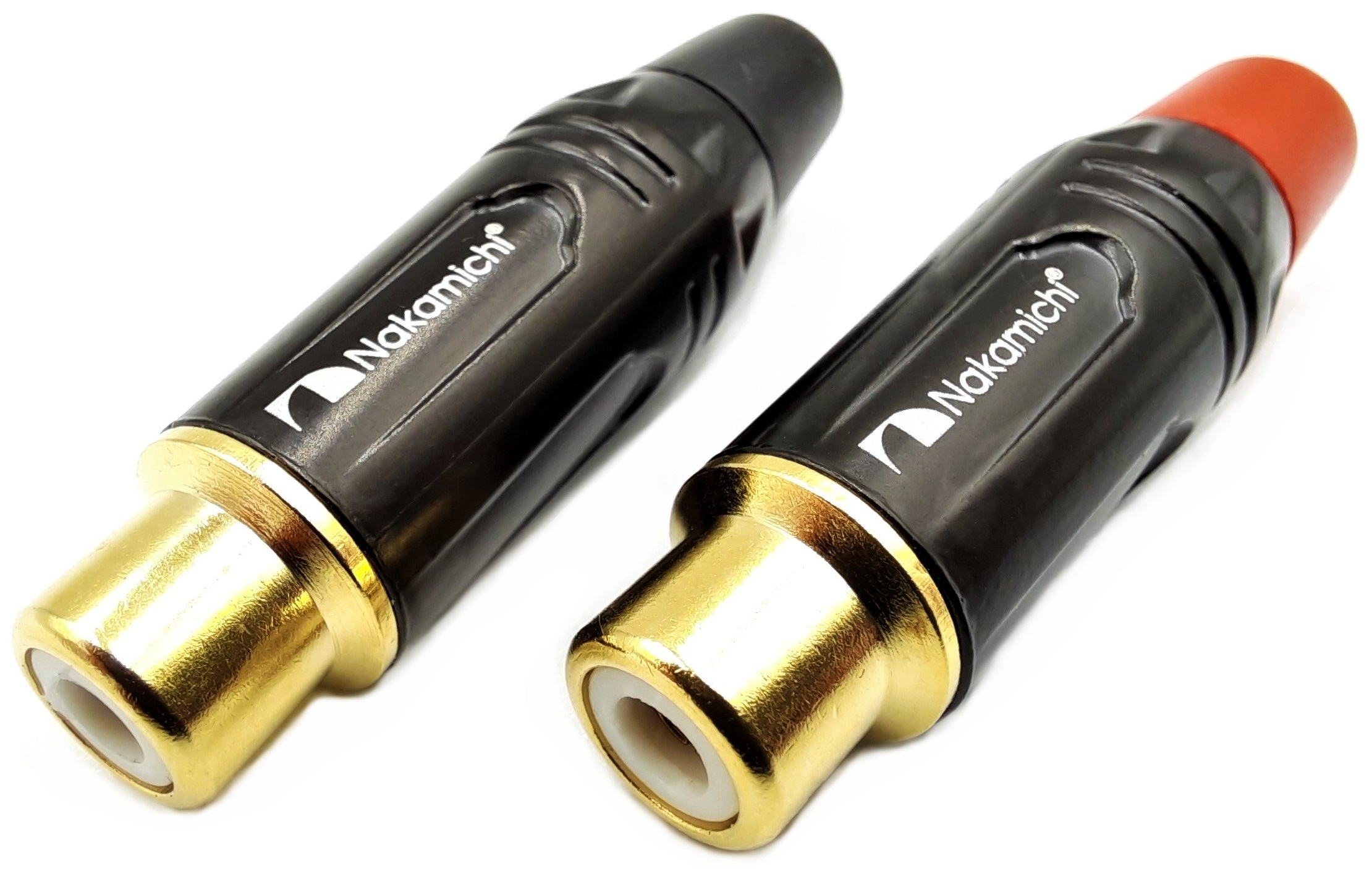 Високий -якісні суцільнометалеві гнізда RCA Nakamichi з силіконовим затискачем. Позолота 24к. Тефлонова ізоляція/гнучка мідна центральна шпилька.