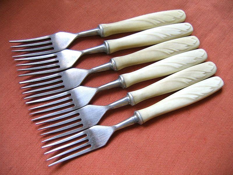 ВИЛКИ Білий БАКЕЛІТ типу СЛОНОВА КІСТЬ аля СЕЦЕСІОН з РЕЛЬЄФОМ 6шт _!!!