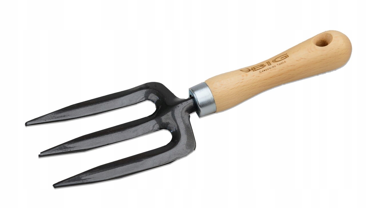 **Вилка для квітів із 3 зубцями** — це невеликий садовий інструмент, ідеальний для точної роботи під час догляду за квітами та невеликими рослинами. Завдяки своїй компактній структурі вони сприяють м’якому розпушенню ґрунту навколо коренів, видаленню бур’янів і розпушенню ґрунту.