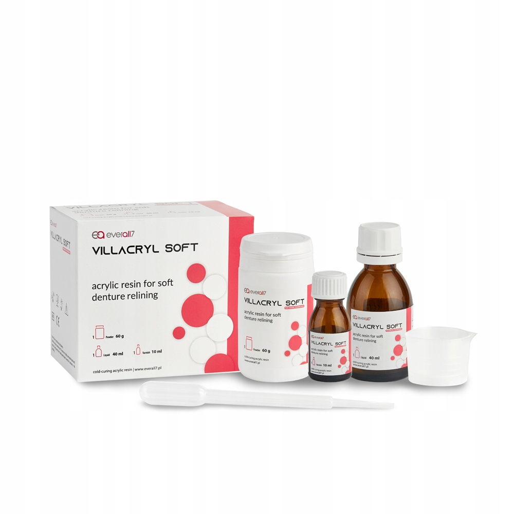Холоднополімеризований акриловий матеріал для тимчасової заміни акрилових зубних протезів. Villacryl SOFT у своїй новій формулі не містить небезпечних фталатів, він був перевірений сертифікованими інститутами та медичними органами. Збереження параметрів і функціональних властивостей гарантовано протягом 30 днів використання в ротовій порожнині пацієнта.