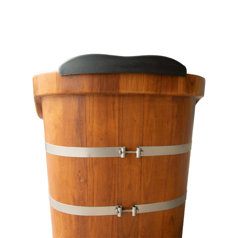 Інтер'єр оснащений ергономічним дерев’яним сидінням та зручною подушкою для шиї, виготовленої з синтетичної шкіри, що не є слизом. На дні є круглий відтік нержавіючої сталі - міцний, простий в чистоті та естетичні. Вся конструкція зміцнюється трьома сталевими ободами, , які запобігають деформаціям і підвищують стабільність ванни.