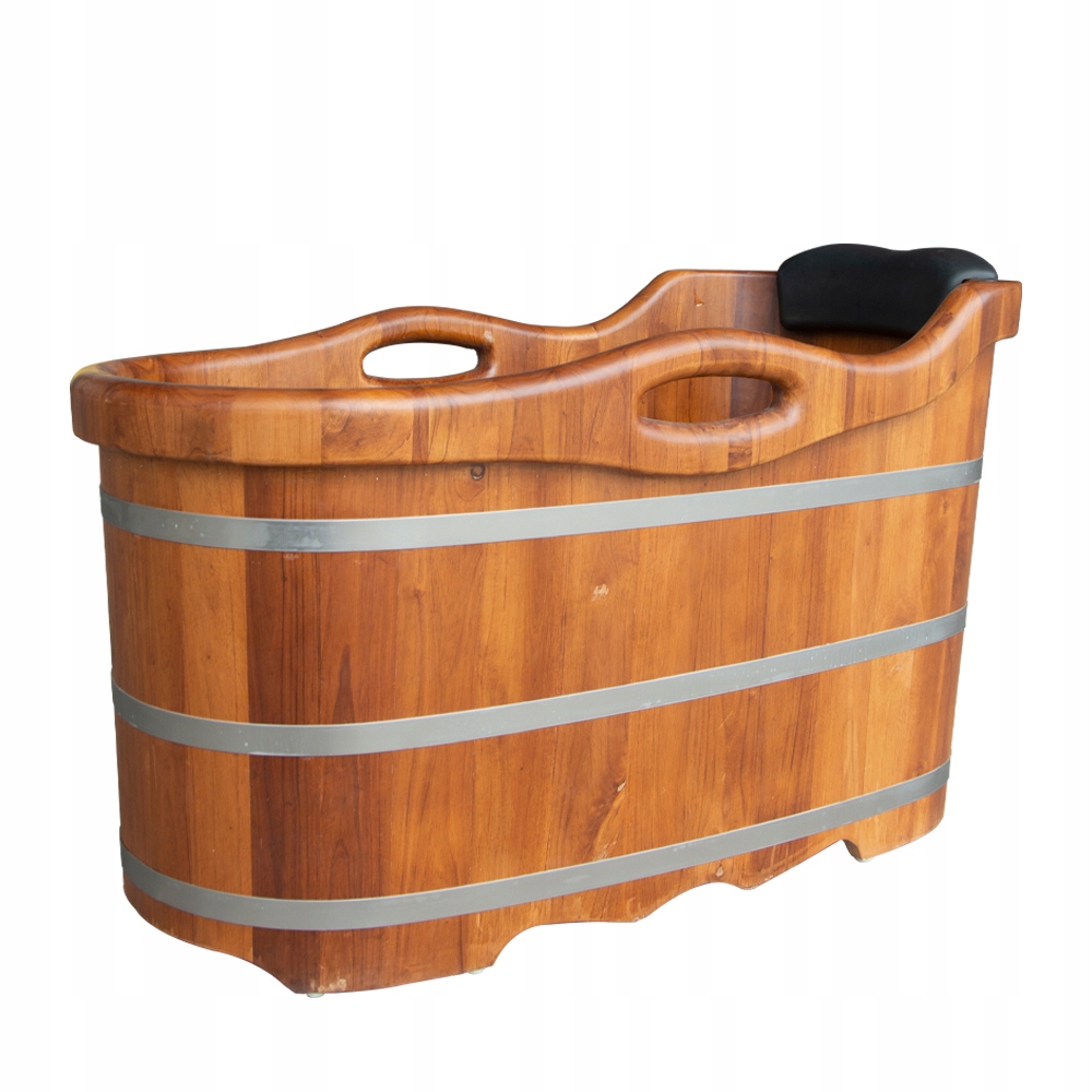Відокремлена ванна з сучасною овальною формою забезпечує комфорт під час сидячої або лежачи ванни. виготовлений з високоякісної деревини, стійкої до вологи та температури, зберігає довговічність і природний, приємний вигляд. Нижня частина ванни має хвилясту структуру, яка обмежує контакт із землею та знижує ризик пошкодження .