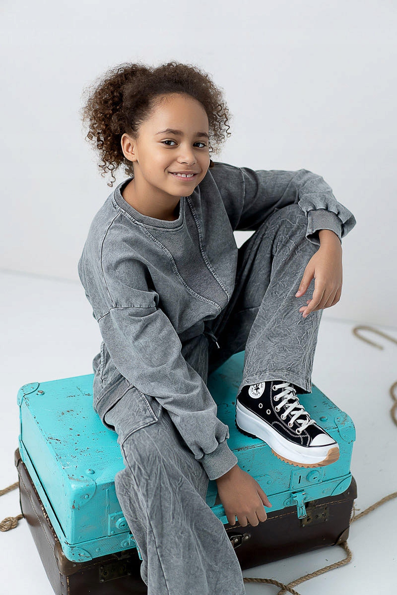 Вільний повсякденний костюм сірий набір штанів друкованих штанів 128 штанів
