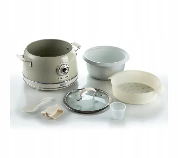 - Елементи обладнання: ківш, каструля, посібник користувача, гарантійний талон, кошик для варіння на пару, мірний стакан, скло кришки, ручка кошика