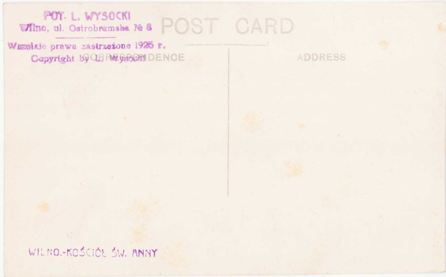 ВІЛЬНЮС ~ ЦЕРКВА СВ. ANNY~1925 ФОТОГРАФ Л. ВИСОЦЬКИЙ ul. Остробрамська №8~РАРИТ!