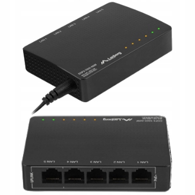 Lanberg DSP3-1005-60W до невеликий некерований настільний комутатор PoE+, оснащений 5 портами Gigabit Ethernet, включаючи 4 PoE з реальним бюджетом 60 Вт PoE для кінцевих пристроїв, включно зі стандартом. p>