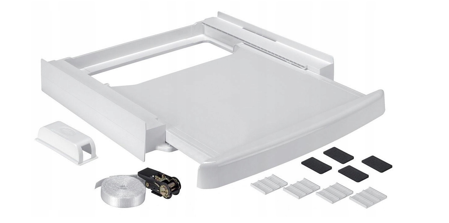 Адаптер для пральних та сушильних машин це рішення, яке простим способом економить місце. Висока якість виготовлення та міцна конструкція дозволяють безпечно розмістити сушильну машину. З'єднувач не тільки легко встановити, але й не потребує додаткових інструментів для монтажу. Крім того, для забезпечення стабільної конструкції в набір входить ремінь, який з’єднує обидва пристрої.