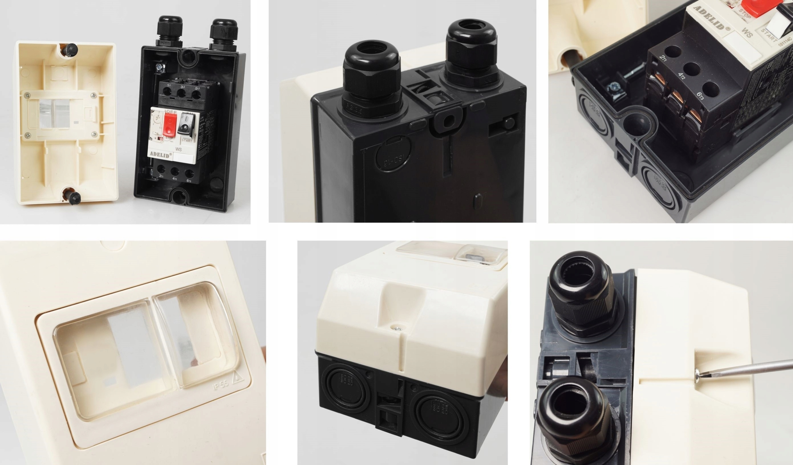 Вимикач двигуна, 3-фазний WS, у пластиковому корпусі, IP65, з двома кабельними вводами PG 13,5.