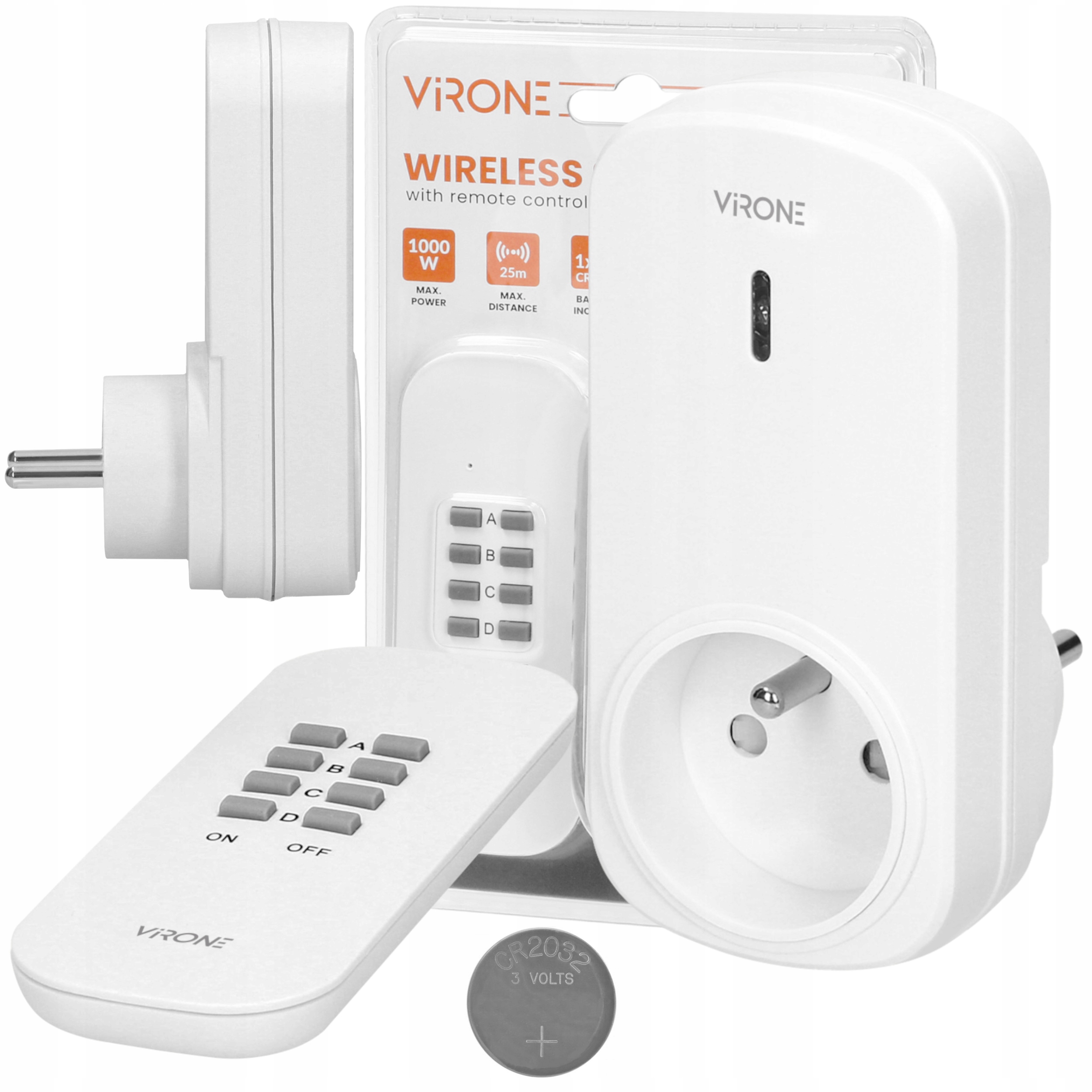 - КОМПЛЕКТ 1 РОЗЕТКА + ПУЛЬТ ДИСТАНЦІЙНОГО КЕРУВАННЯ, СИМВОЛ: VIRONE RS-5