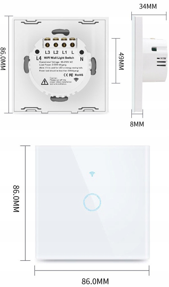 розміри вимикача: 86x86x35 мм