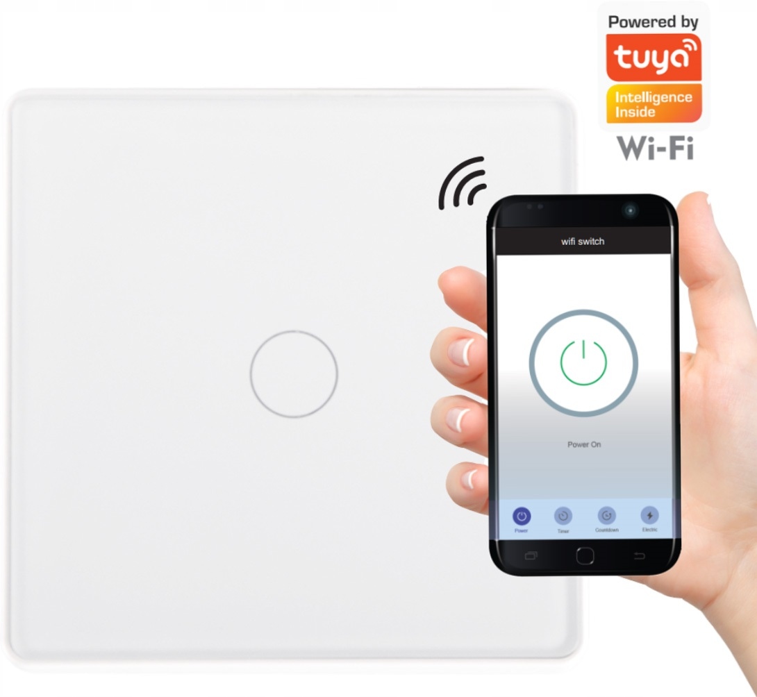 Один скляний сенсорний перемикач WiFi зі скляною панеллю та світлодіодним підсвічуванням кнопки.