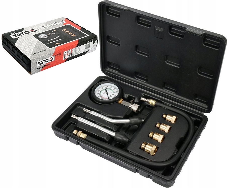 8-частинний набір для вимірювання тиску стиснення в бензинових двигунах.