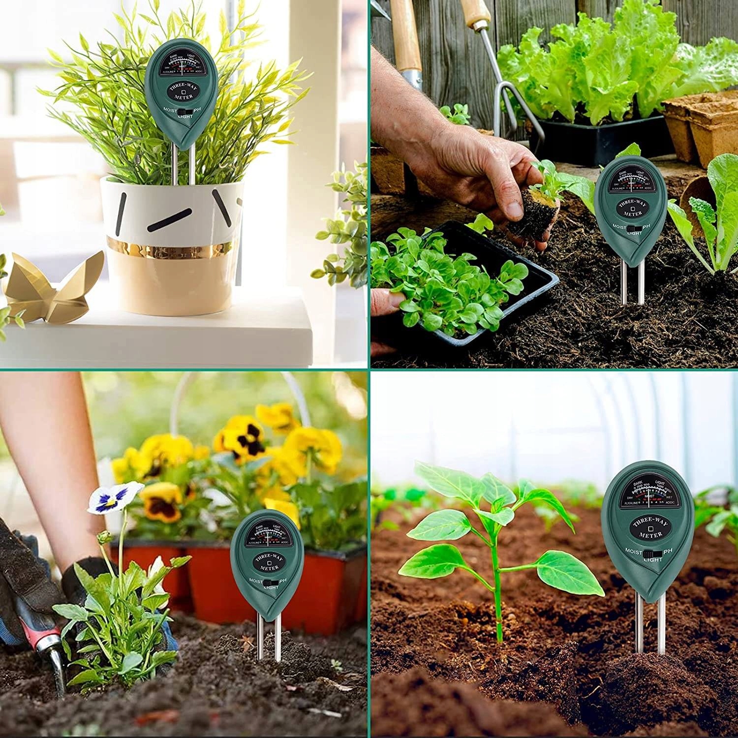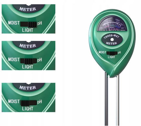 3 в 1 - вимірює вологість ґрунту, кислотність (pH) і вплив сонячного світла - все в одному пристрої.