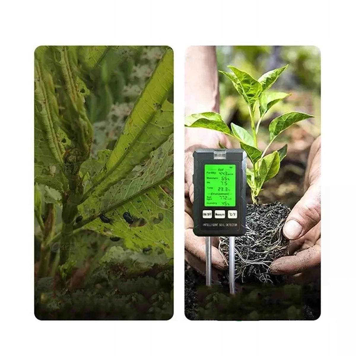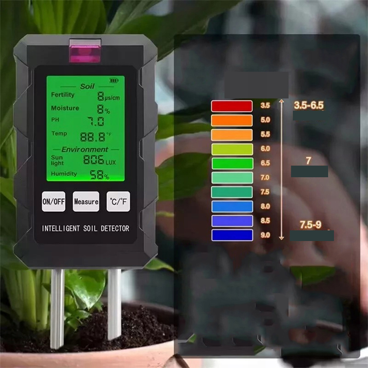 - ✅ Точні вимірювання - Забезпечує точні вимірювання родючості ґрунту, температури, інтенсивності світла, рН, вологи та вологості ґрунту для оптимального догляду за рослинами.