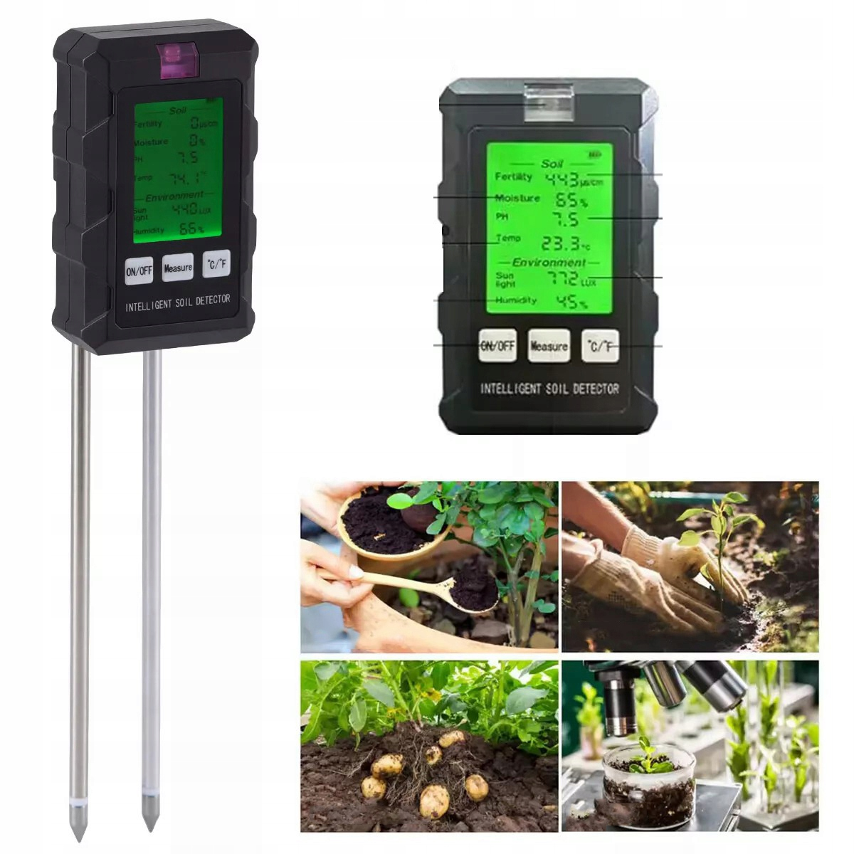 - ✅Функції 6 в 1 - комплексний тестер ґрунту, який вимірює родючість, температуру, освітленість, рН, вологість ґрунту та вологість навколишнього середовища, все в одному пристрої для садівників.