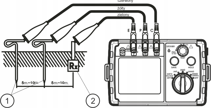 Допоміжний опір заземлення: 500 Ом; помилка +/-5%