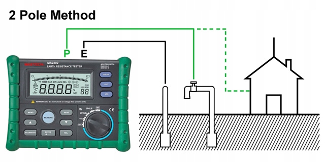 - вимірювання опору землі двополюсним методом ( 2-полюсний метод)