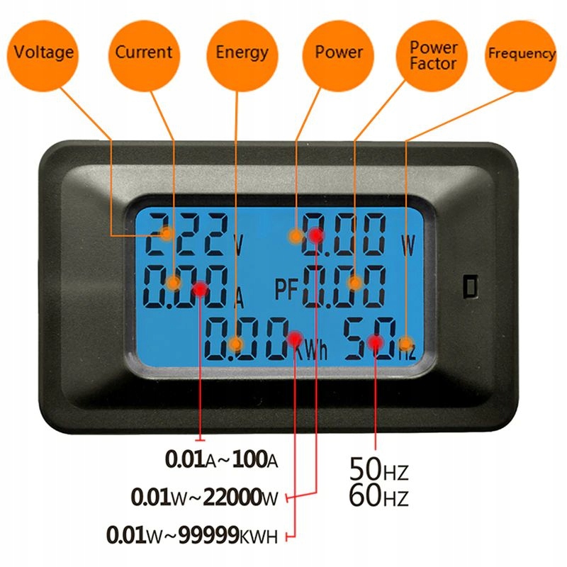 Вимірювач потужності Напруга Струм Ватметр змінного струму до 100А