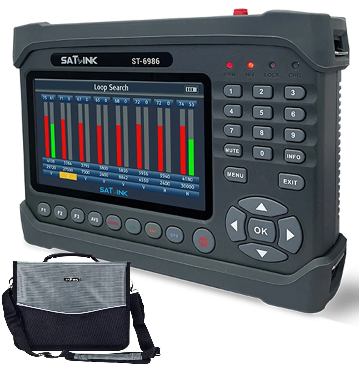 ST-6986 є вимірювачем типуCOMBO для вимірювання супутникових сигналів DVB-S/S2/S2X і наземних і кабельних сигналів DVB-T/T2/C Стиснення MPEG-2/4 і H.264 / H.265 (10 біт). Він має барвистий великий 7-дюймовий РК-дисплей і функцію попереднього перегляду каналів.