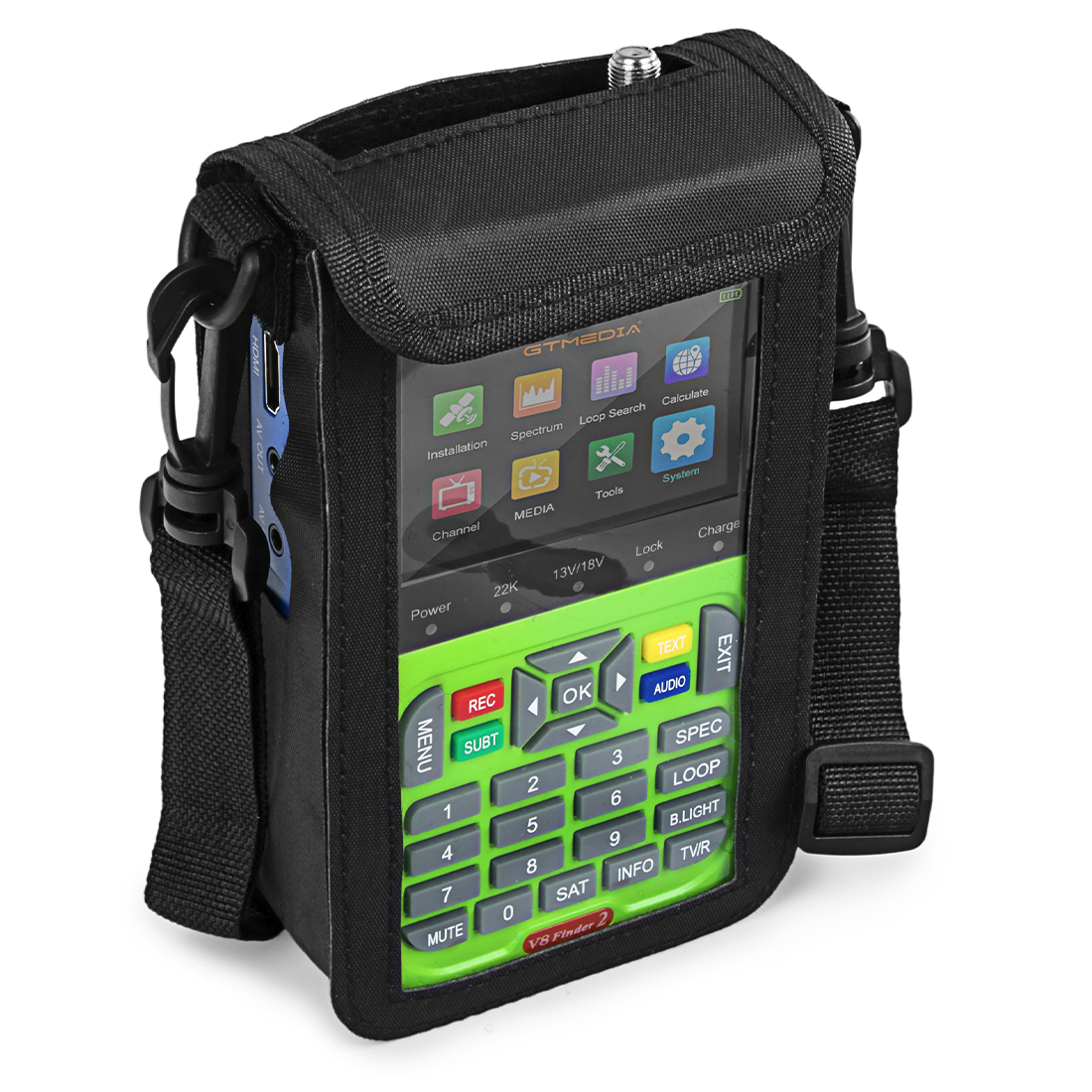 Нова версія вимірювача супутникового сигналу DVB-S і DVB-S2/S2X із великим 3,5-дюймовим кольоровим РК-дисплеєм. Попередній перегляд каналів FTA. Декодування H.264. Обкладинка в комплекті.