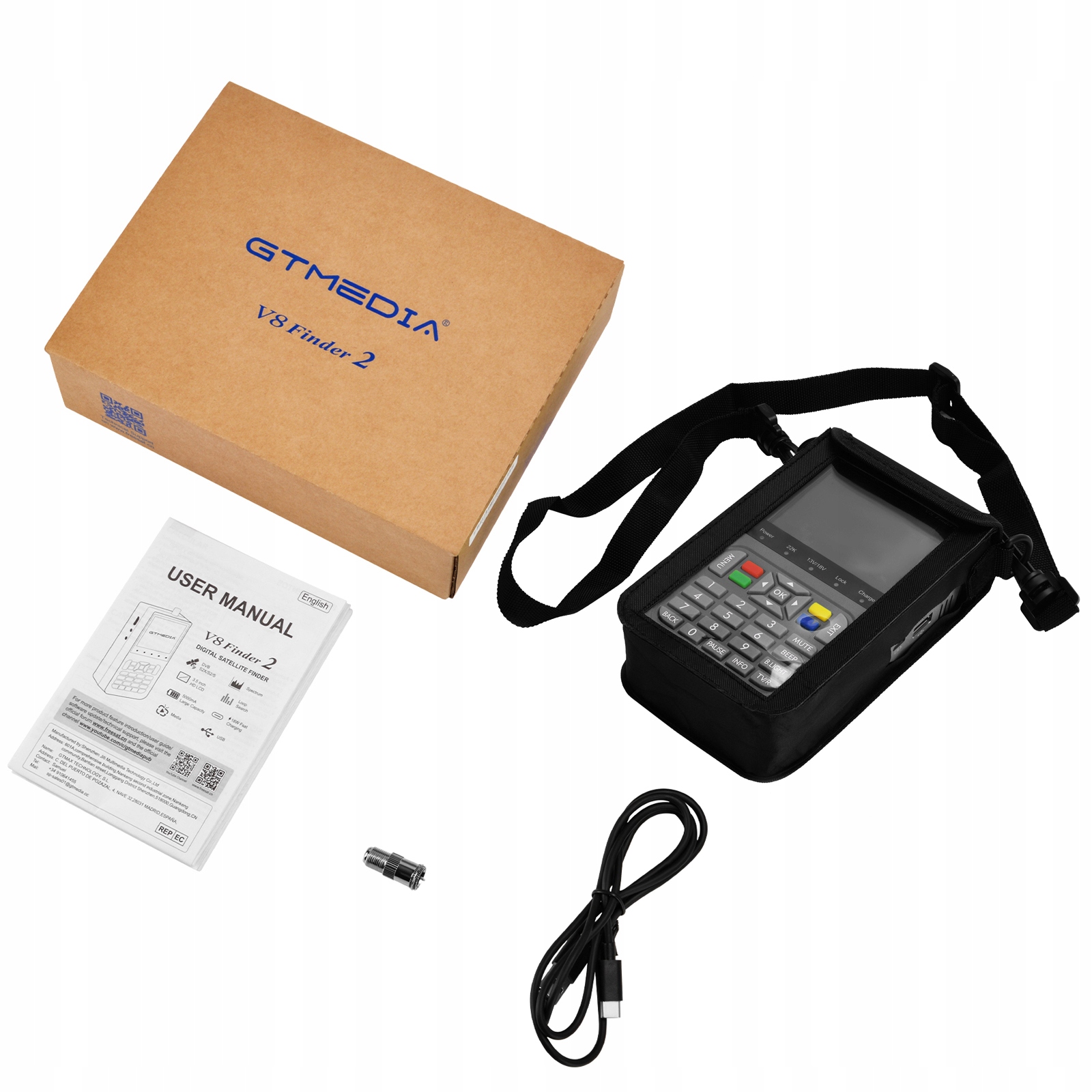 GTMEDIA V8 Finder 2 – це портативний вимірювач сигналу, сумісний зі стандартами DVB-S/S2/S2X і MPEG-2/4 H.264 (8 біт). Завдяки компактному розміру, малій вазі, інтуїтивно зрозумілому інтерфейсу користувача, довгому ресурсу батареї та багатому набору функцій, лічильник забезпечує всі функції, необхідні для встановлення та перевірки послуг цифрового телебачення в житлових будинках або багатоквартирних будинках.