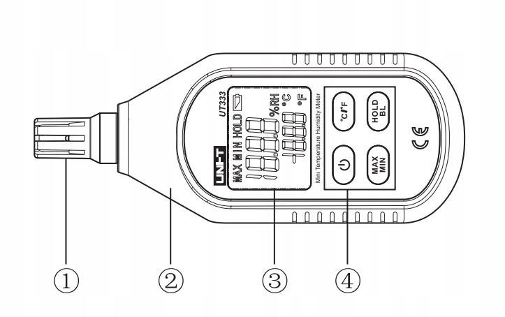 - Діапазон вимірювання: -10°C ~ 60°C; 14°F ~ 140°F