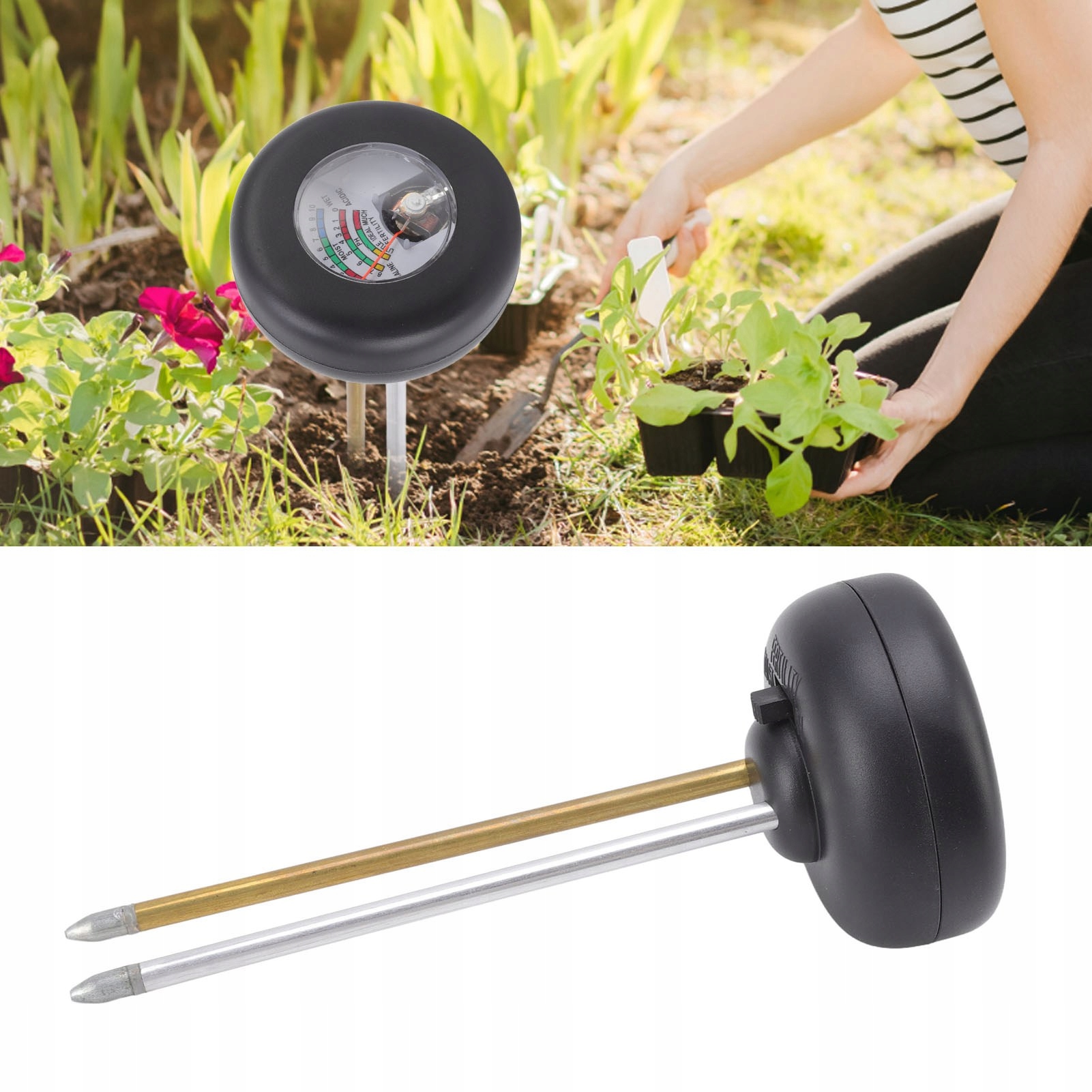 ✨ 3 в 1: Функція 3 в 1 для вимірювання вологи ґрунту, рН та родючості . Для того, щоб читання було точним, ґрунт повинен мати певну вологість.