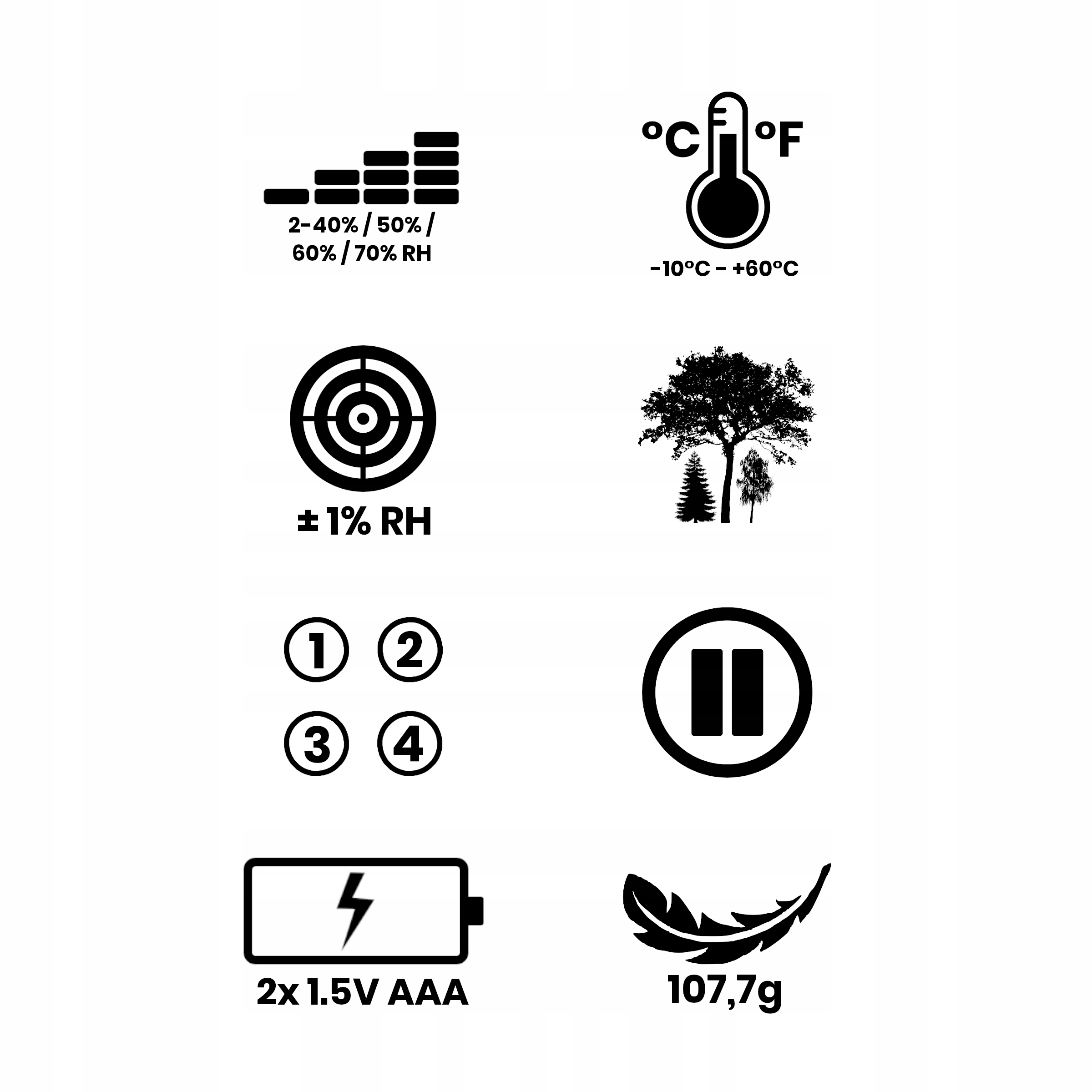 - Діапазон: 20–95% відносної вологості