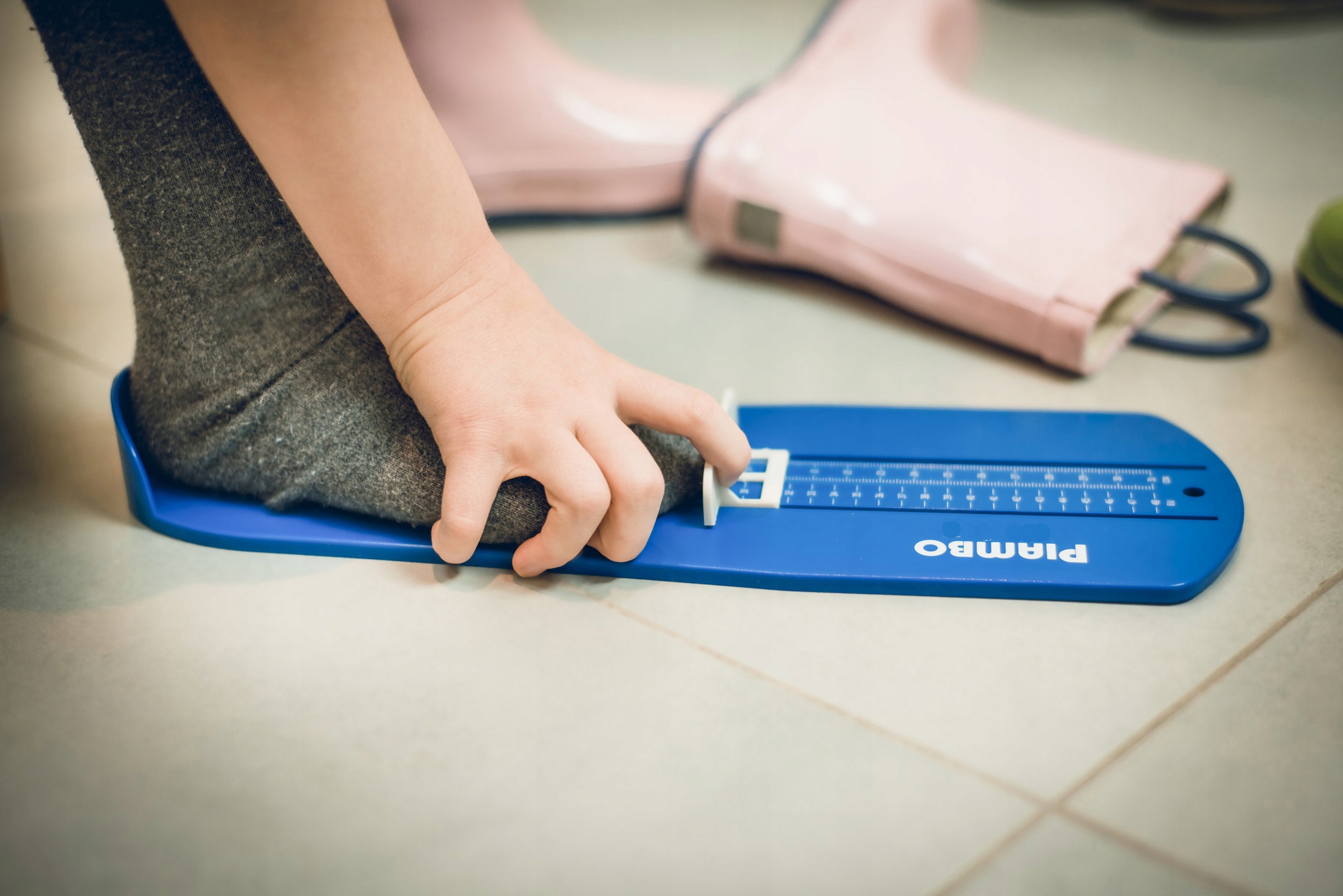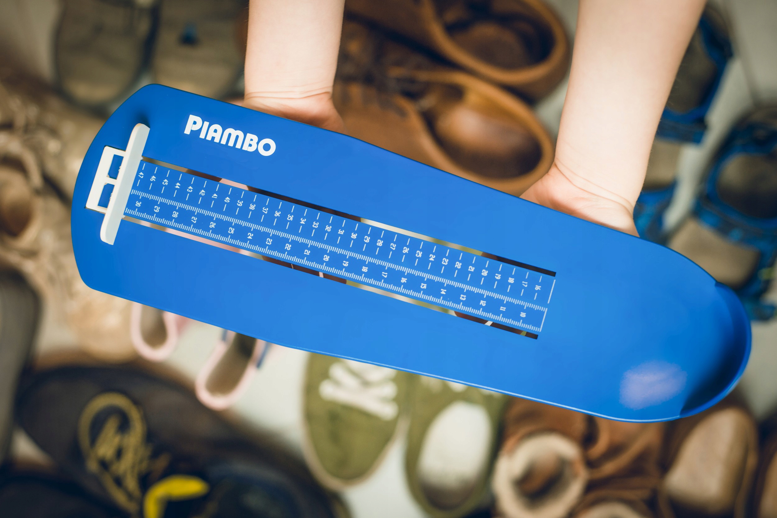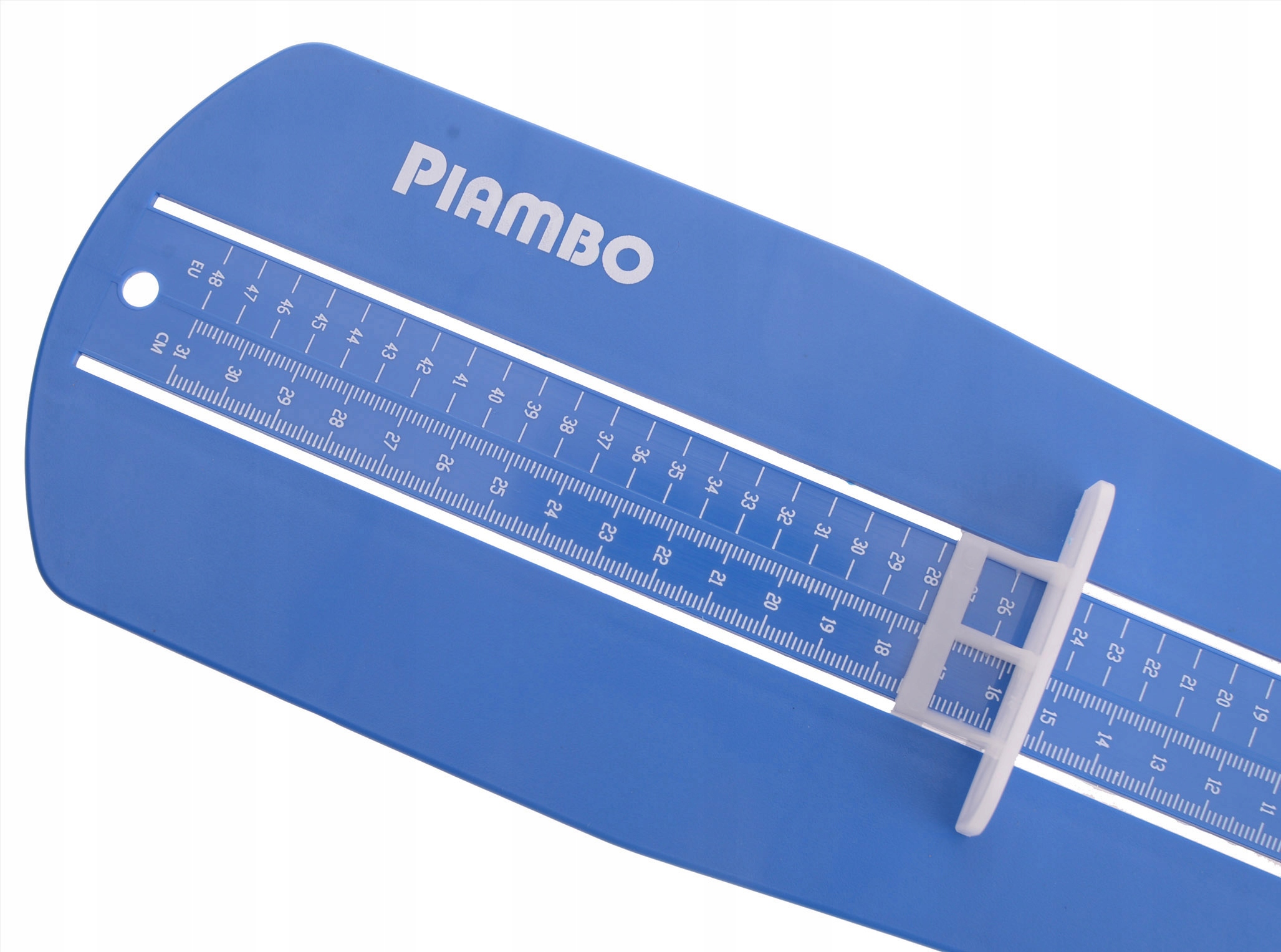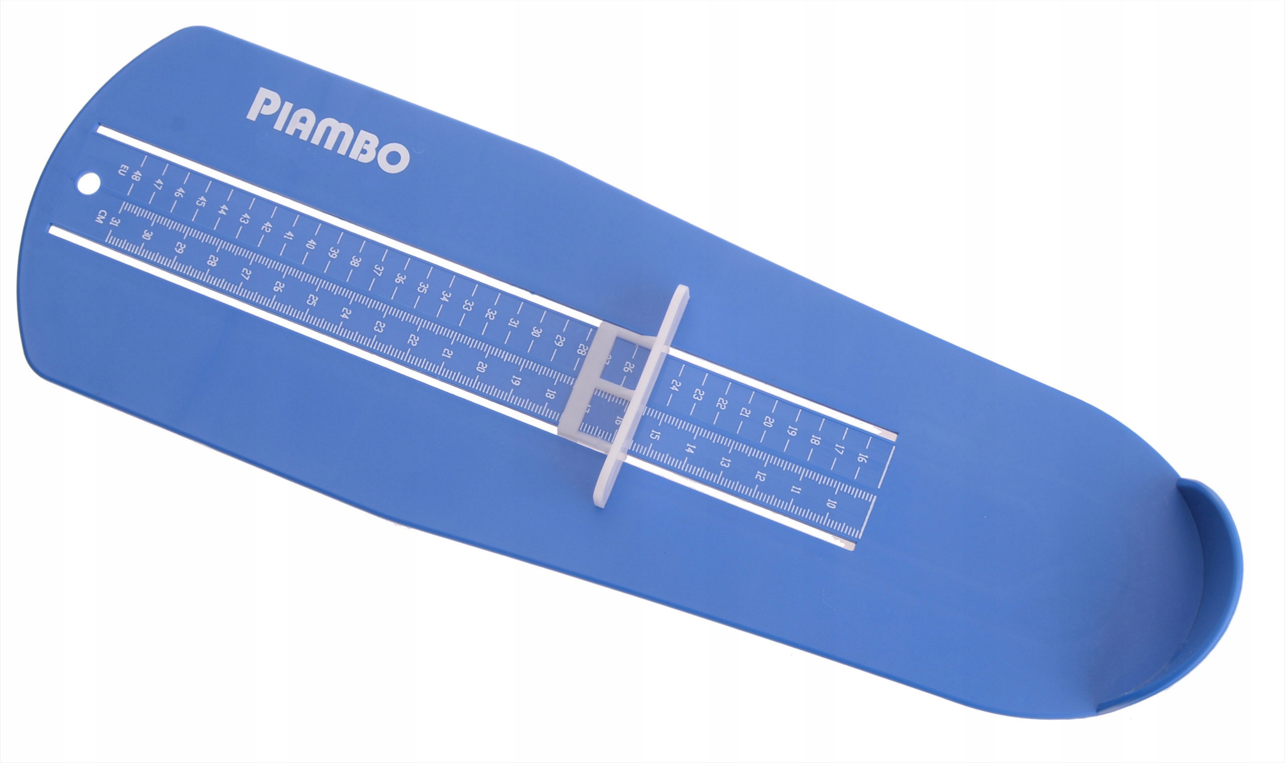 Мірка для стопи Piambo має дві шкали: у сантиметрах (CM) і в європейській (ЄС) нумерації. Таким чином ви можете легко перевірити не лише довжину стопи вашої дитини, але й відповідний розмір взуття.