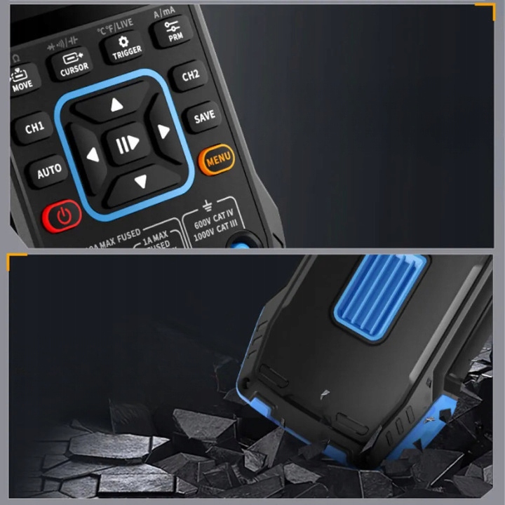 - пристрій 3-в-1: поєднання цифрового осцилографа з електронним мультиметром і генератор сигналу DDS