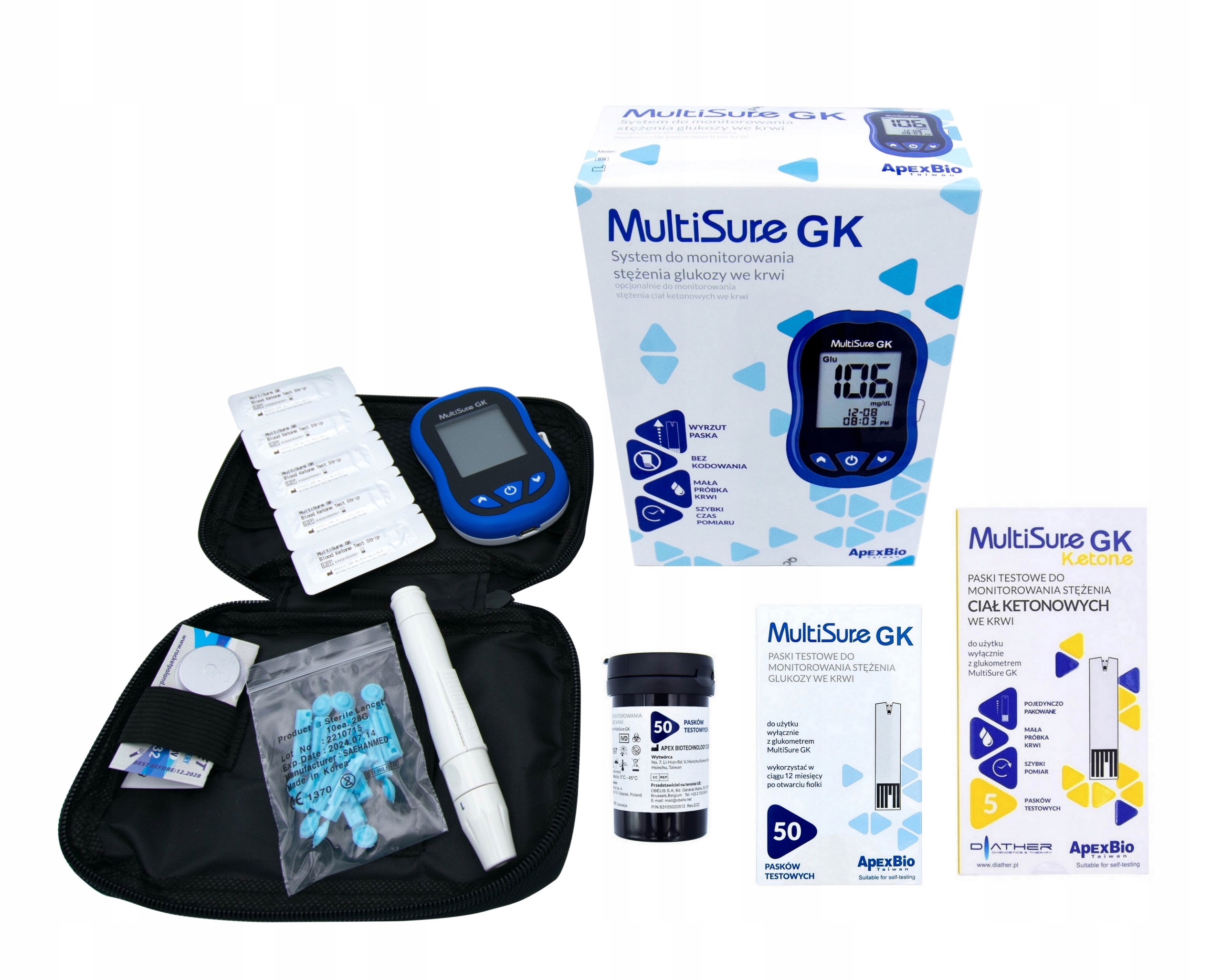 - MultiSure GK забезпечує точну, швидку, просту, відверту інтуїтивно зрозуміле вимірювання кетонових тіл і концентрації глюкози в крові. Легкий пристрій оснащений добре читаним дисплеєм із простими для інтерпретації маркуваннями результатів.