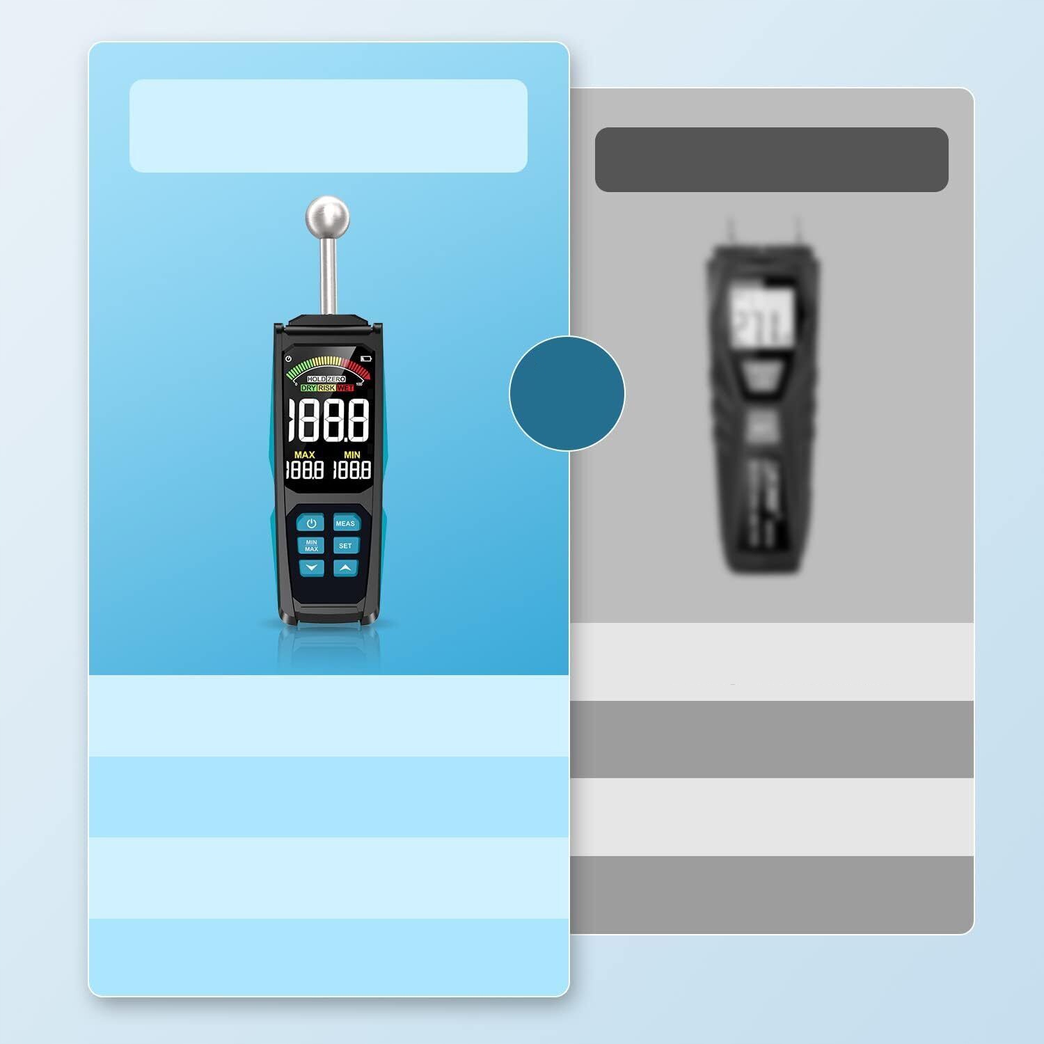 ⚡【 Широкий асортимент застосувань 】⚡: підходить для випробування вологи деревини та будівельних матеріалів, таких як гіпсокартон, шифера, плитка, картон, гіпс, бетон та міномет, а також для ремонту витоків води, перевірка вологи спальні, плитки підлоги або караванів тощо.