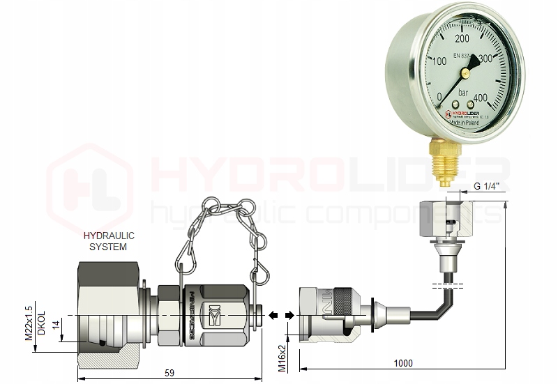 400 бар з 1m кабелем та з'єднанням