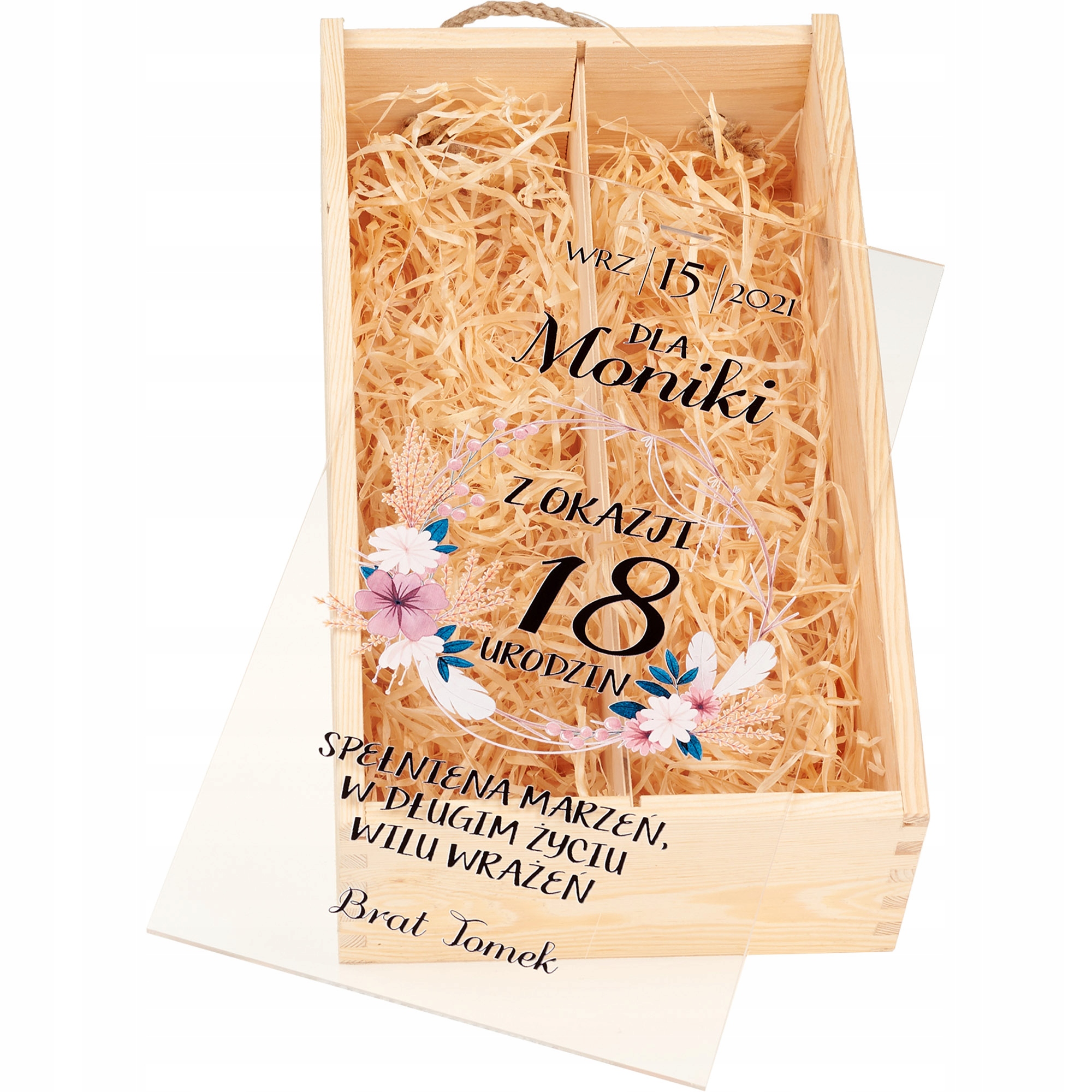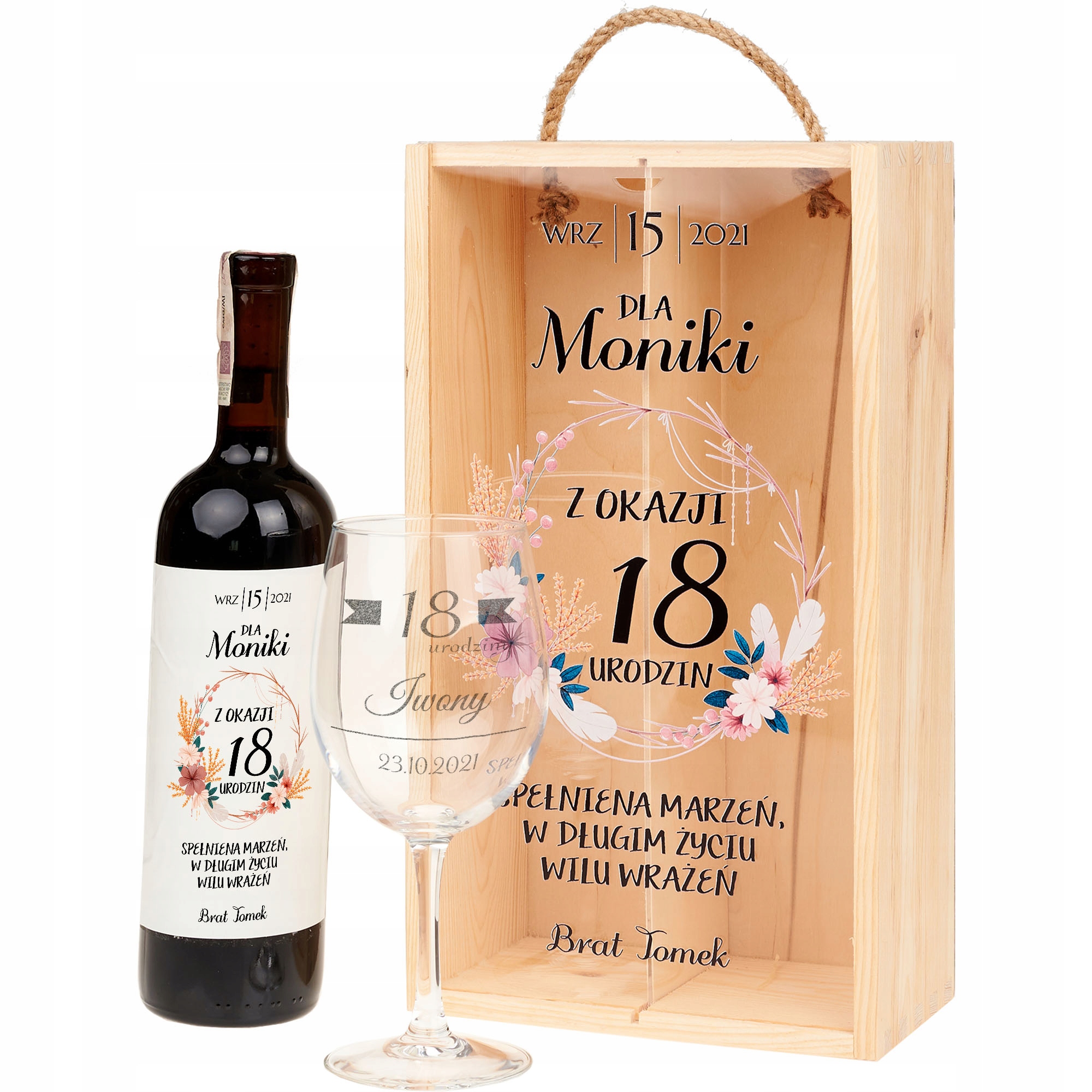 КОРИБКА ДЛЯ ВИНА З ДВОМА ВІДДІЛЕННЯМИ + ЕТИКЕТКА ДЛЯ ВИНА + СКЛО З ГРАВІЮВАННЯМ: