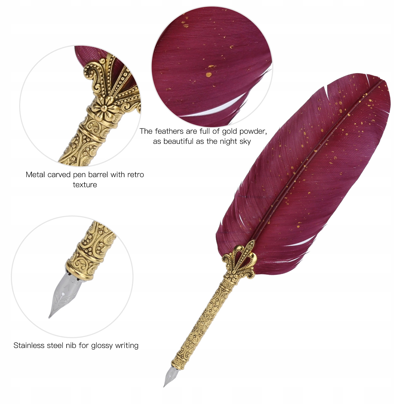 Набір ручок з пір'ям, набір старовинних каліграфічних ручок для малювання, приладдя для рукоділля SP236906 Золоте посипання червоного вина (золота коробка)