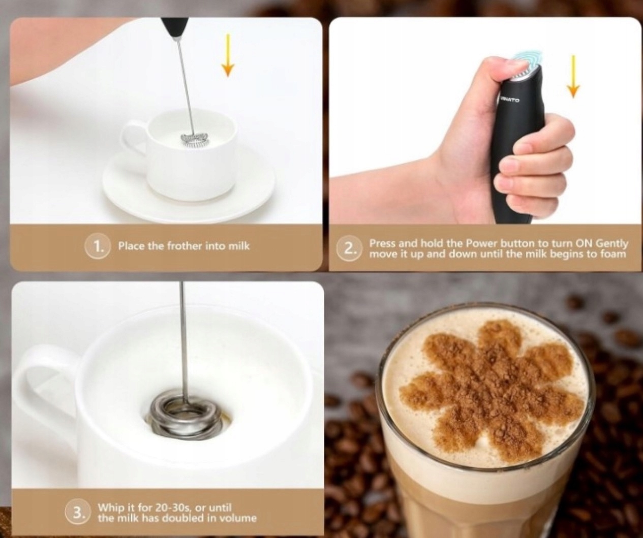 - Швидке спінювання - створює ніжну вершкову піну за кілька секунд, ідеальну для кави, латте, капучіно та гарячого шоколаду.
