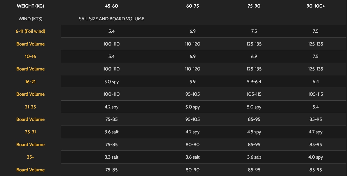 Ви можете взяти 2 менших розмірів на хвилі та більший 3 розміри на дощок Freeride. Макет з 6 рейок був використаний для здивування швидкості в пристойних умовах.